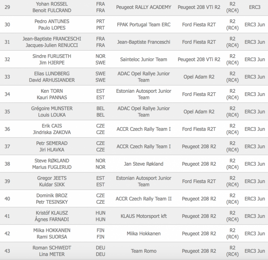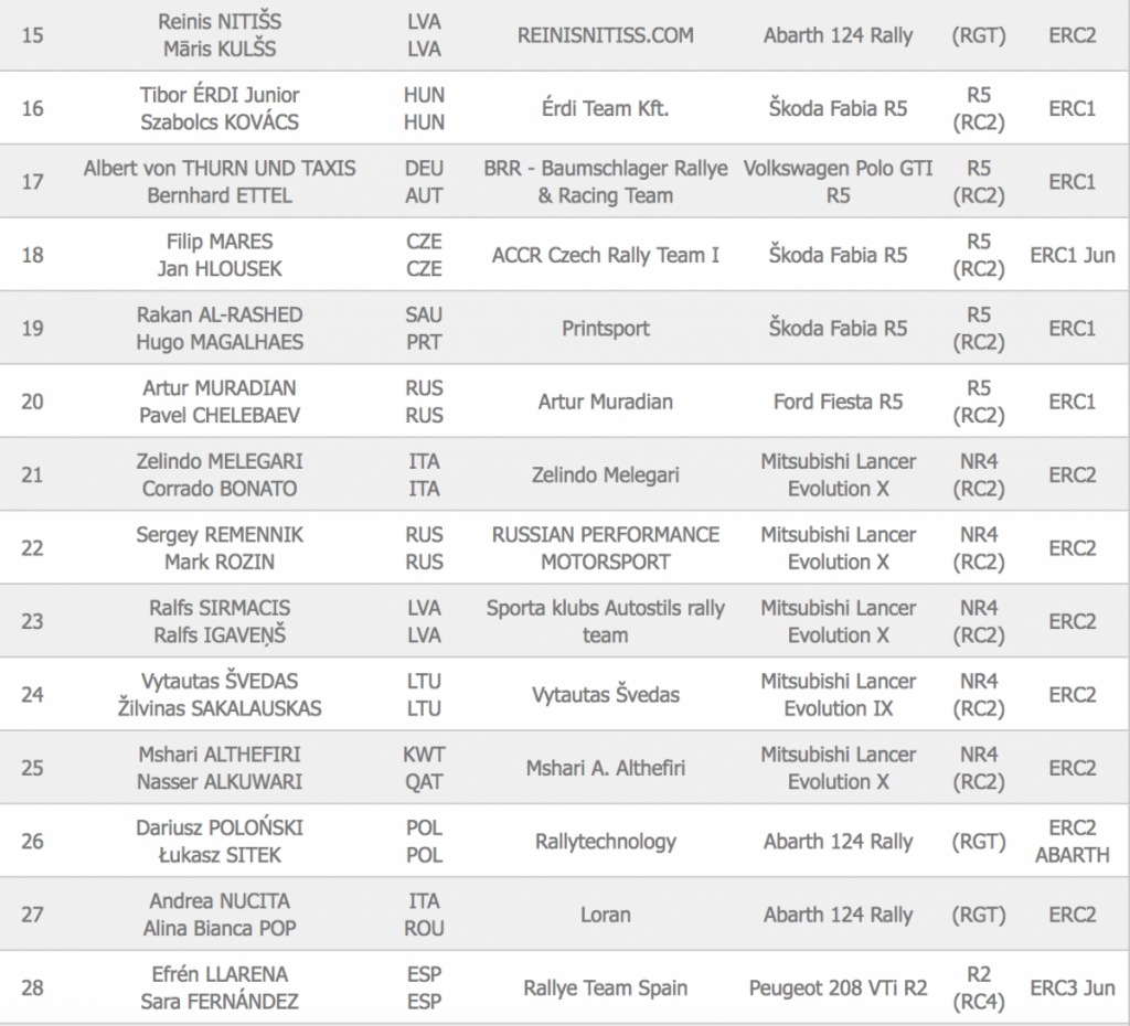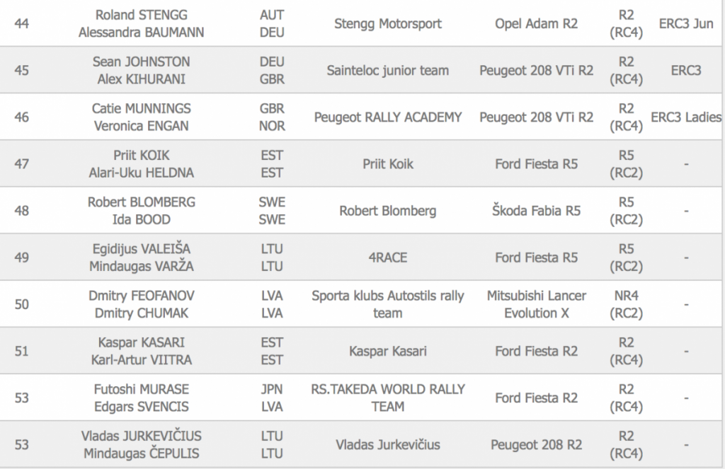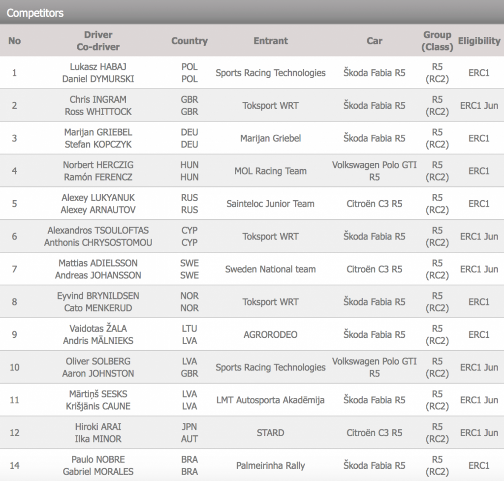El Rally Liepāja (Letonia), de tierra, tiene un total de 53 equipos inscritos, de los que 21 monturas son R5 y donde están los primeros espadas del certamen Habaj, Chris Ingram, Marijan Griebel, Norbert Herczig y Alexey Lukyanuk. La cita se disputará del 24 al 26 de Mayo.