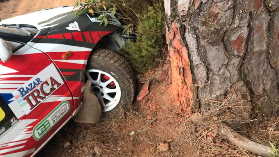 A penas a cuatro kilómetros aproximados de empezar el rally tropezaba con una piedra incrustada en el suelo, la cual nos partía la rótula axial en una zona rápida, quedándonos si dirección y, por suerte, arrastrando la rueda delantera derecha contra dos pinos y parar el coche.