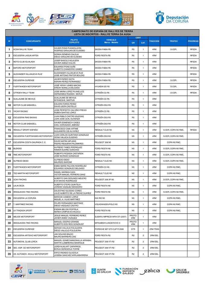 Lista de inscritos del Rally Terra da Auga Por Rafa León En 21/05/2019 00:20 Compartir FacebookTwitterWhatsAppEmailTelegramLinkedin Publicamos la lista de inscritos del Rally Terra da Auga, cita del CERT. Campeonato de EspañaCERTEspaña Compartir