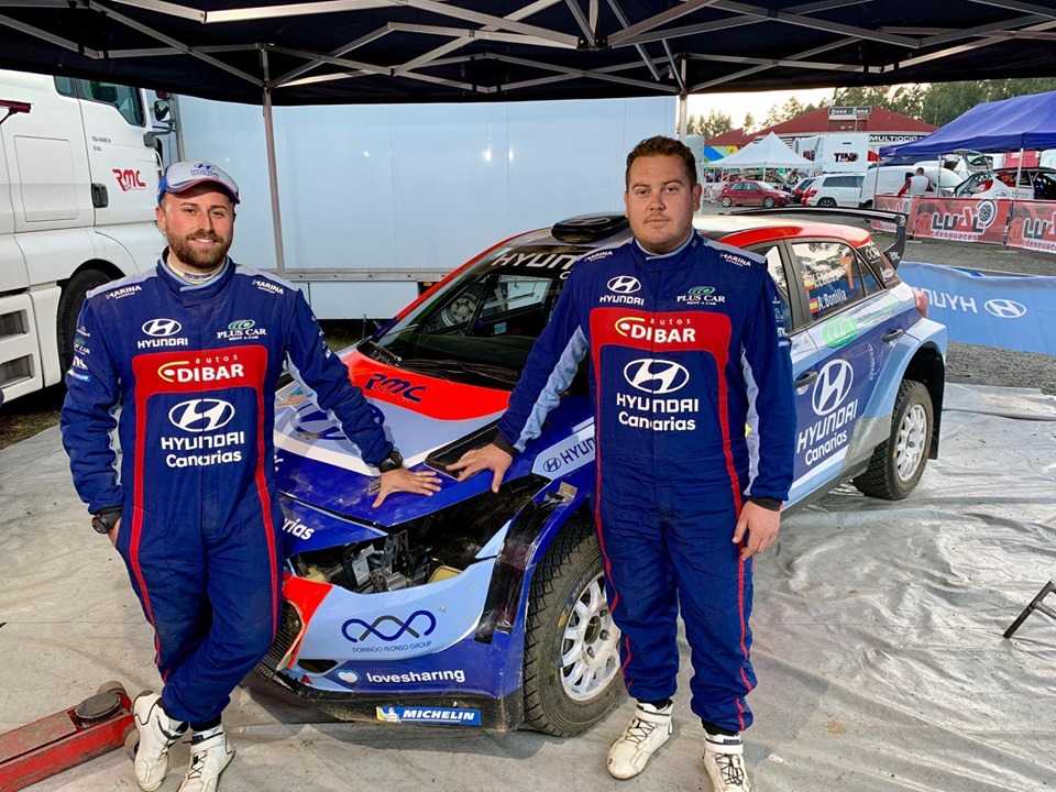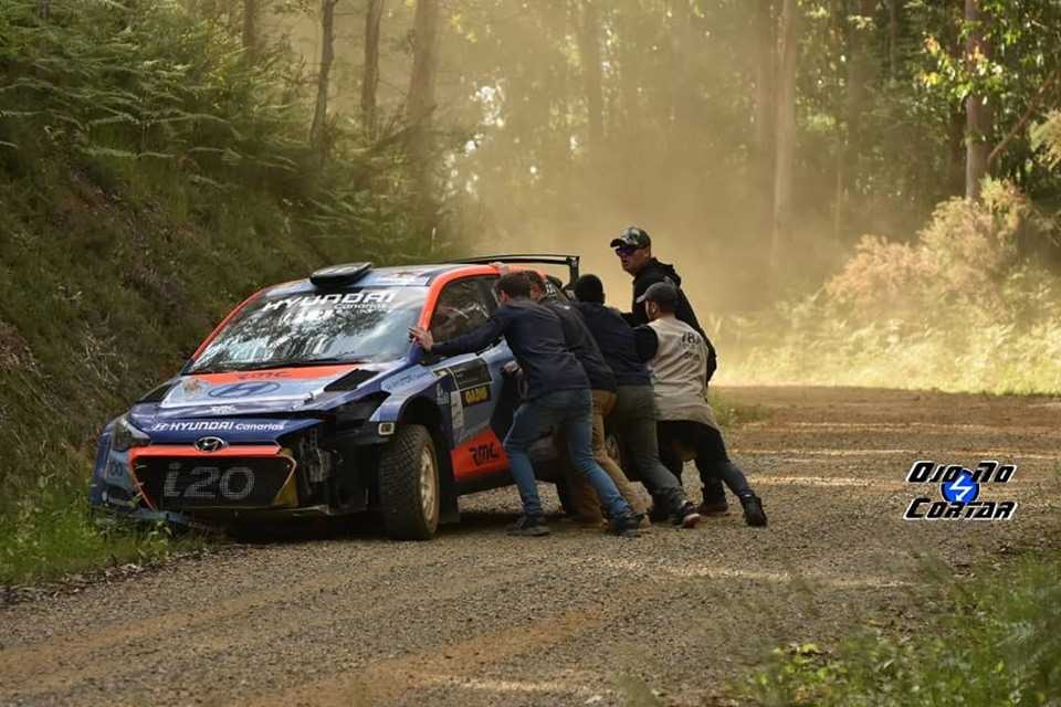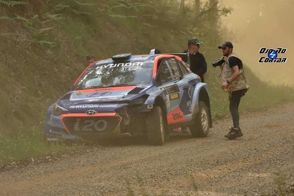 La participación de los lanzaroteños Yeray Lemes y Ariday Bonilla (Hyundai i20 R5) se vio interrumpido de manera drástica en el único tramo del viernes del Rally Terra da Auga.