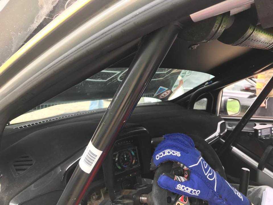 Como caía una fuerte lluvia en la salida del tramo, quise ajustar el setup del coche y en la precipitación me olvidé de cerrar correctamente el capó…