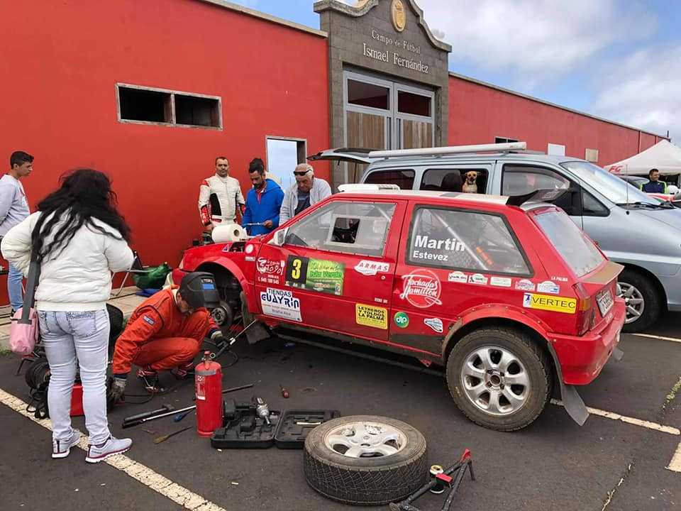 Un vuelco evitó a Pedro David Martín y Luis Alberto Estévez (Citroën AX T4 Turbo) acabar en la tercera posición del Rally Isla Verde, por lo que ahora están en la reparación de la montura para tenerla en condiciones lo antes posible.
