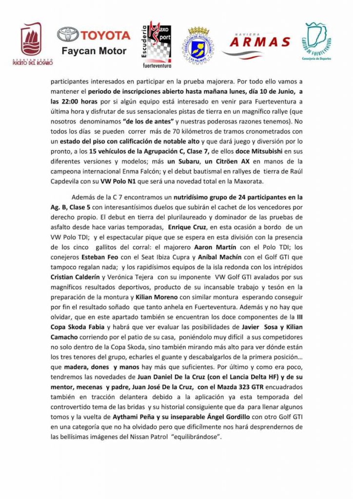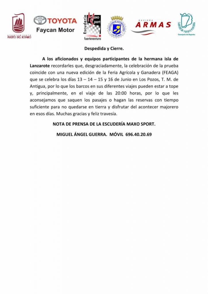 Publicamos la documentación que la Escudería Maxo Sport ha remetido sobre los cambios en el programa del XXI Rally Ciudad Puerto del Rosario 2019 (Fuerteventura).