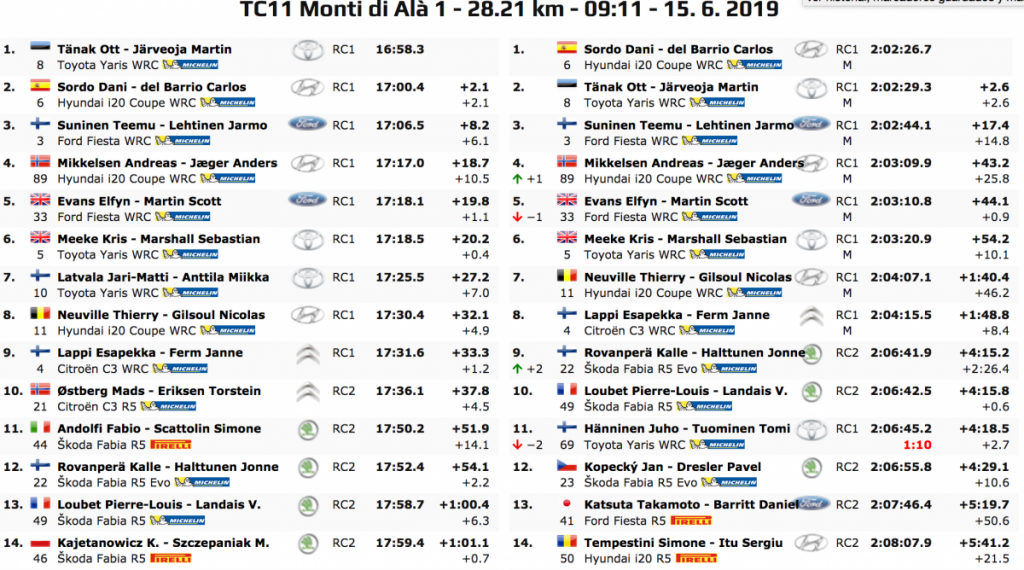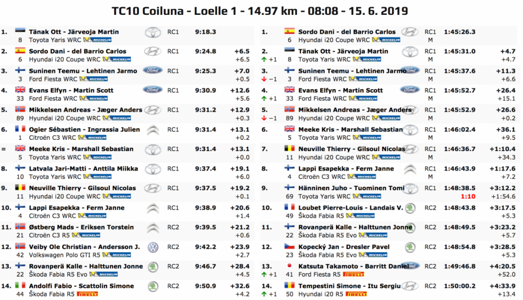 El de Toyota ha sido el más rápido en cada una de las tres especiales, seguido siempre por el de Hyundai, que veía con impotencia cómo sus 11.2 segundos de diferencia se esfumaban y ahora se encuentra a 6.4, por lo que en poco más de 71 kilómetros contra el crono Tänak le ha saco 17.6 segundos.