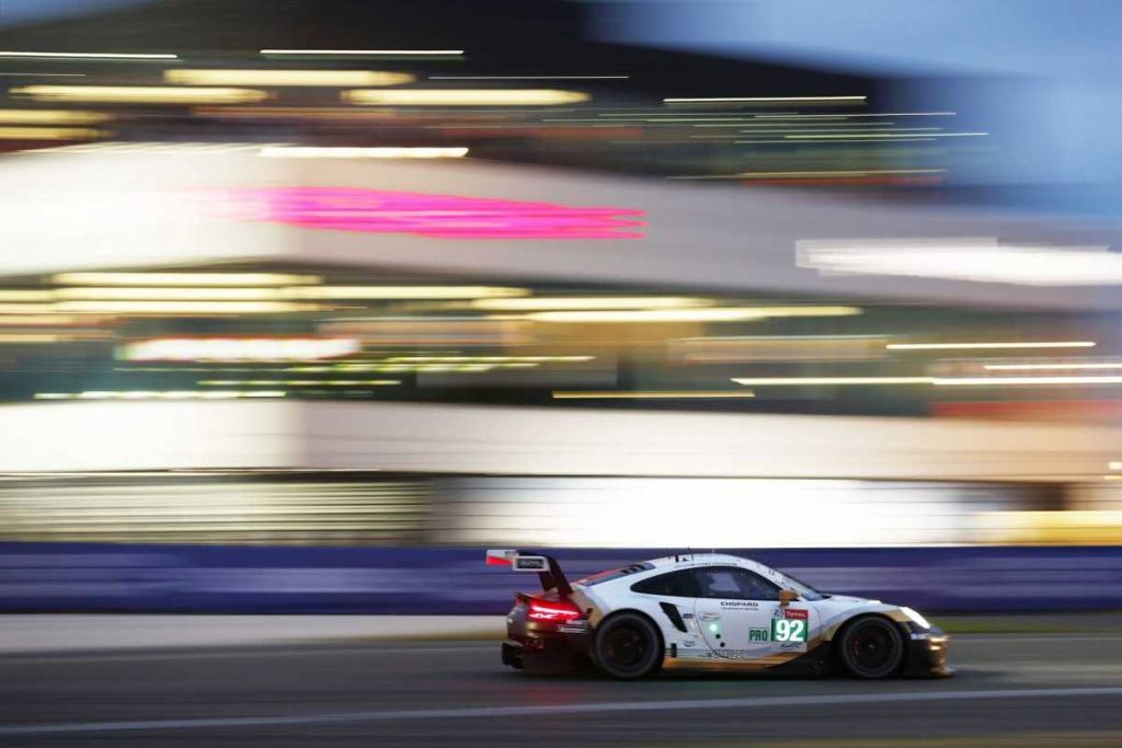 A lo largo de buena parte de la prueba, el vehículo de los nuevos campeones del mundo, Christensen/Estre, y de su compañero Vanthoor estuvo en el camino de repetir el triunfo del pasado año. Después de cinco horas, el coche 92 se colocó líder de la categoría GTE-Pro, posición que mantuvo durante buena parte de la noche. El revés decisivo llegó a las 3:47 de la madrugada. Las reparaciones que se tuvieron que realizar en el sistema de escape hizo perder seis vueltas al trío ganador de Le Mans en 2018. Al final, el coche cruzó la meta décimo, un resultado suficiente para conseguir el título de Pilotos.