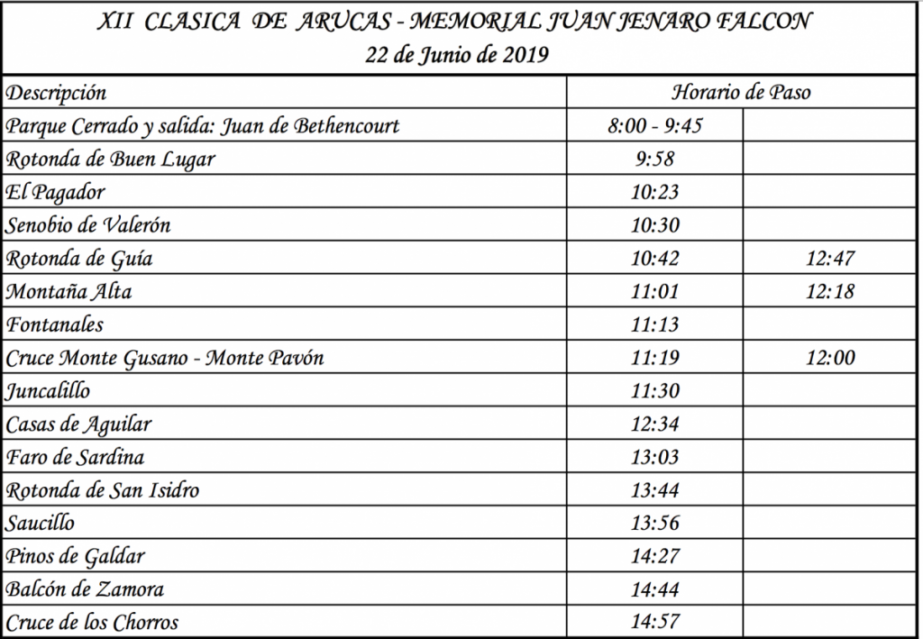 XII Clásica de Arucas: orden de salida y horarios de paso Por Rafa León En 19/06/2019 01:26 Compartir FacebookTwitterWhatsAppEmailTelegramLinkedin Publicamos el orden de salida y los horarios de paso de la XII Clásica de Arucas. ArucasCampeonato de Las PalmasClásica de arucasGran CanariaLas Palmas Compartir