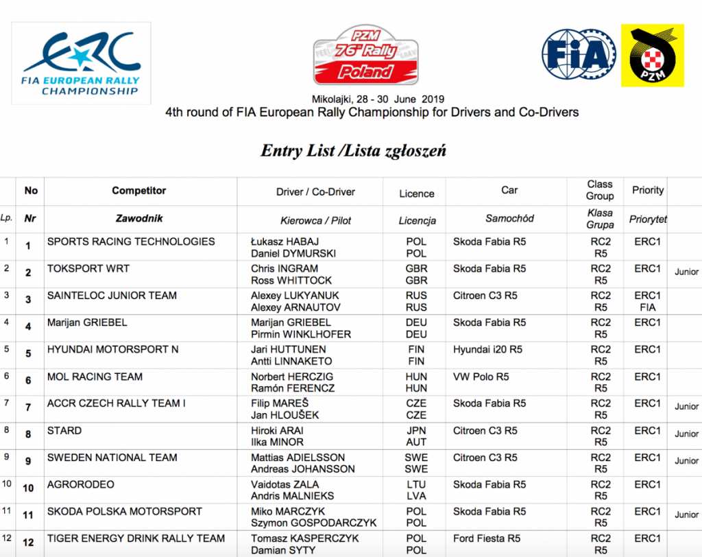 http://www.rajdpolski.pl/pliki/zawodnicy/2019/erc_lista_zgloszen_18-06-2019_08_18_05.pdf