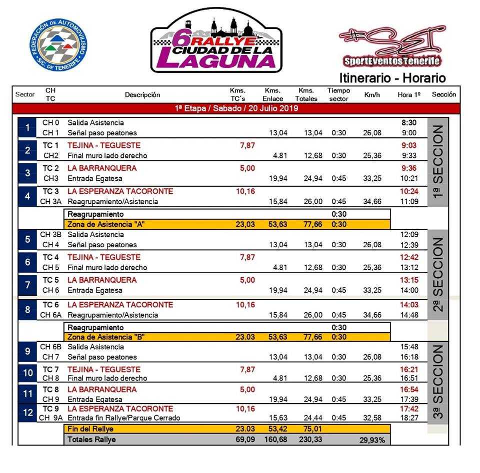 El Comité Organizador del XI Rallye Ciudad De La Laguna ha publicado su Rutómetro, que estará compuesto por un total de nueve tramos cronometrados, disputándose en el clásico formato de 3X3, es decir, tres tramos a tres pasadas cada uno de ellos.