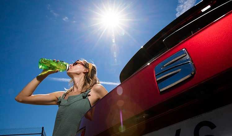 El combustible necesario del conductor: Aunque no está directamente prohibido, comer y beber conduciendo pueden suponer una distracción. Pero con las altas temperaturas hidratarse es clave. Un estudio de la Universidad de Loughborough (Reino Unido) y el European Hydration Institute, asegura que un conductor deshidratado comete los mismos errores que otro que haya tomado 8 copas de vino. Lo mejor es prevenir bebiendo agua antes de iniciar la marcha y en paradas regulares. Además, asistentes como el detector de fatiga analizan el comportamiento del conductor y le recomiendan que se tome un descanso en caso de ser necesario.
