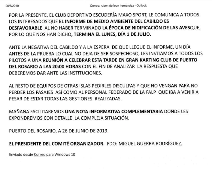 Suspendido el VII Slalom Puerto del Rosario Por Rafa León Última actualización: 26/06/2019 23:13 Compartir FacebookTwitterWhatsAppEmailTelegramLinkedin La Escudería MaxoSport, entidad organizadora del VIII Slalom Naviera Armas Concejalía de Deportes del Ayuntamiento de Puerto del Rosario, a celebrarse este 29 de Junio de 2019, ha informado que la prueba ha sido suspendida. Campeonato de FuerteventuraEscudería Maxo SportFuerteventuraLas PalmasMaxo SportPuerto del RosarioSlalom Puerto del Rosario Compartir