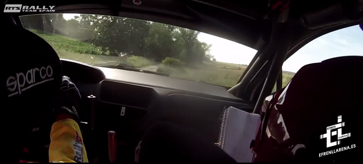 Cámara interior de los epañoles Efrén Llarena y Sara Fernández (Peugeot 208 R2) en los test previos al Rally de Polonia, cita del Campeonato de Europa de Rallys.