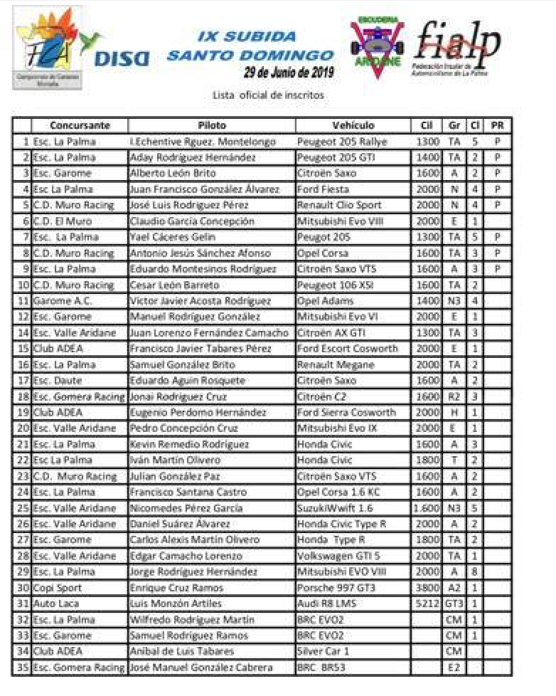 Publicamos la lista oficial de Inscritos de la IX Subida Santo Domingo (La Palma), cita del Campeonato Disa Autonómico de Canarias de Montaña, Campeonato Provincial de Santa Cruz de Tenerife y del Campeonato Insular de La Palma.