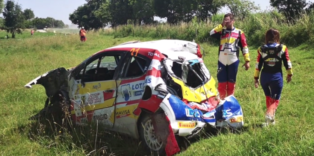 Publicamos el vídeo de la fuerte salida de Efrén Llanera y Sara Fernández (Peugeot 208 R2) en el Rally de Polonia, cita del ERC. A pesar del impacto, ambos salieron ilesos.