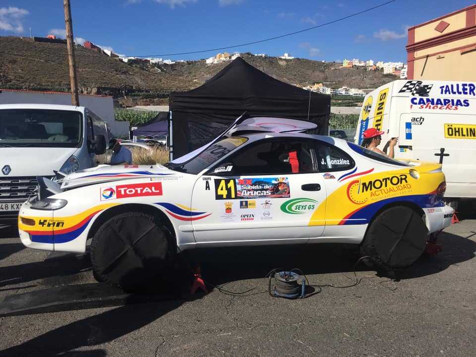 El periodista grancanario Juan González, responsable de la información del mundo del motor en el periódico La Provincia y en la web motoractualidad.com, repitió la experiencia del año pasado en la Subida de Arucas y se montó en el Toyota Célica Turbo 4WD cedido por su hijo Rubén (un grande), para acabar en la décimo octava plaza de la general. Nos alegramos mucho de verte disfrutar, querido Juan.