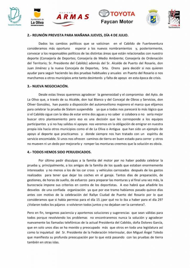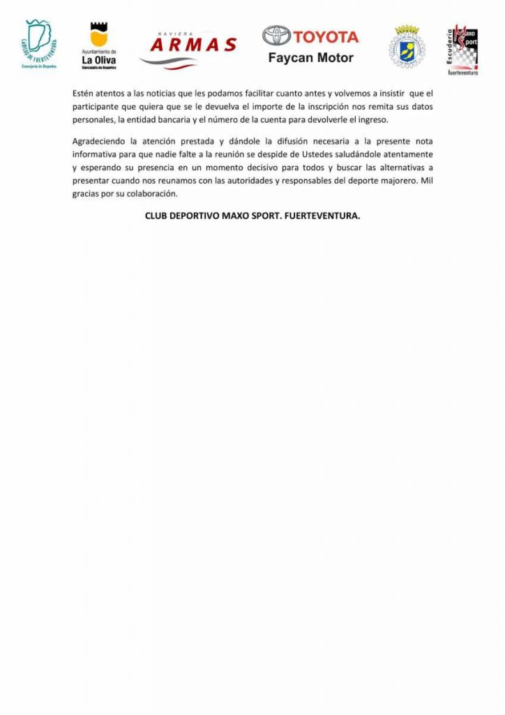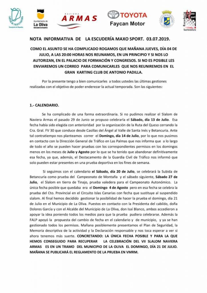 La Escudería Maxo Sport, organizadora del Slalom Puerto del Rosario (Fuerteventura), mantendrá una reunión este jueves, porque todo apunta a que se podría volver a cambiar de fecha de celebración de la cita majorera.