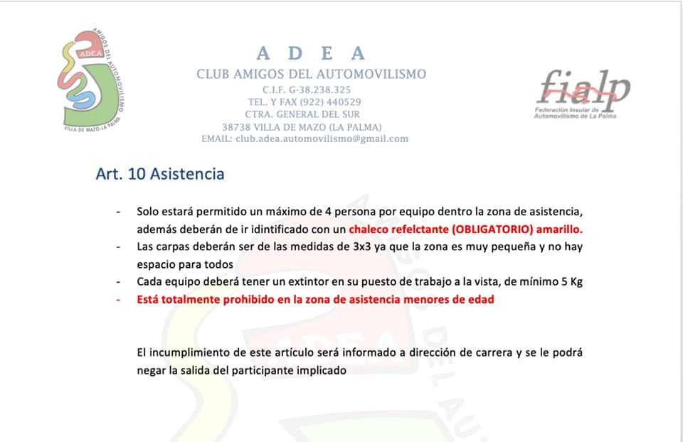 Desde la entidad palmer piden «por favor, colaboren, ya que el plan de seguridad que está en vigor se exige este apartado».
