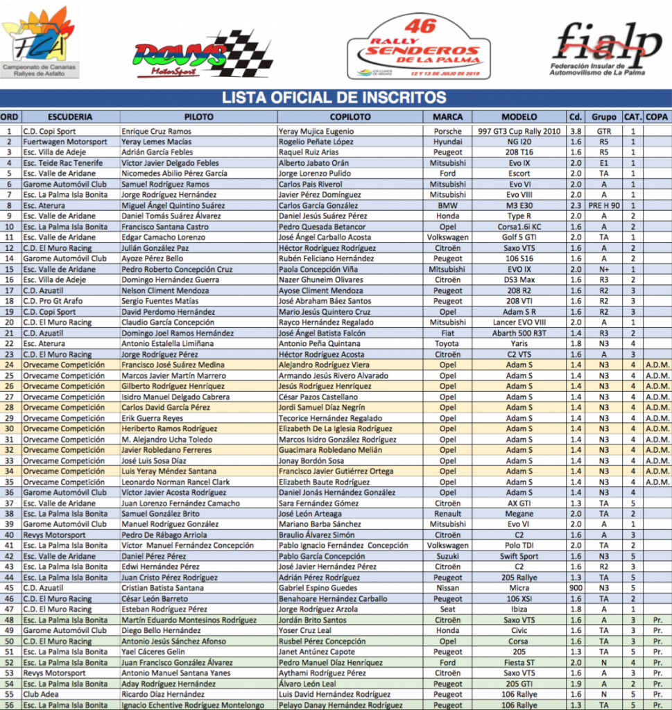 Orden de salida del 46º Rallye Senderos de La Palma Por Rafa León Última actualización: 10/07/2019 17:42 Compartir FacebookTwitterWhatsAppEmailTelegramLinkedin Publicamos el orden de salida del 46º Rallye Senderos de La Palma, cita del Campeonato de Canarias de Rallys. Campeonato de Canarias de RallysCampeonato de La PalmaCanariasLa PalmaRally Senderos de La Palma Compartir