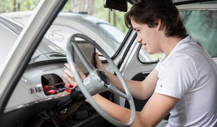 Una revolución en el interior: La combinación de un modelo histórico y de alumnos de la Generación Z ha significado una revolución en el interior del vehículo, que cuenta con pantalla táctil y control de luces automático. “Ha sido muy interesante ver cómo los estudiantes se imaginan el coche del futuro y cómo lo convierten en una realidad”, comenta el profesor.