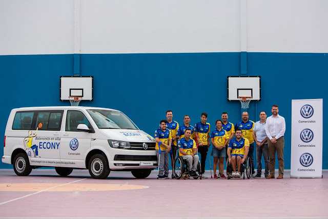 Los miembros del equipo de baloncesto se dieron cita en el Pabellón García San Román de Shamann junto a Benigno Hernández, Brand Manager de Volkswagen Comerciales Canarias, quien realizó la entrega oficial de la nueva Transporter Combi a Ismael Naim Bencharki, Presidente de la Agrupación Deportiva de Minusválidos ECONY.