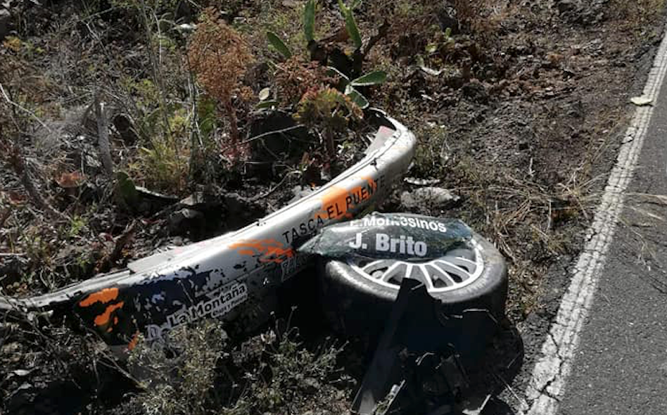 Este es el caso de los palmeros Eduardo Montesinos y Jordan Brito (Citroën Saxo VTS), que no podía terminar el Rally Senderos de La Palma por culpa de un incendio que dejó su coche calcinado.