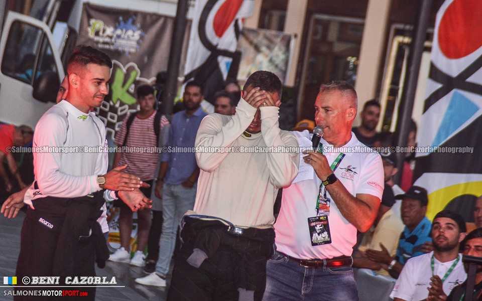 En el Rally Senderos de La Palma estuvo preciso para pillar el momento donde Eduardo Montesinos es animado por Ian Montgomery en el podio donde pasaban los equipos que habían terminado la prueba. No fue su caso, pero la imagen de tristeza mezclada con impotencia la pudo captar el objetivo de Beni. Por eso afirmamos el famoso dicho: una foto vale más que mil palabras.