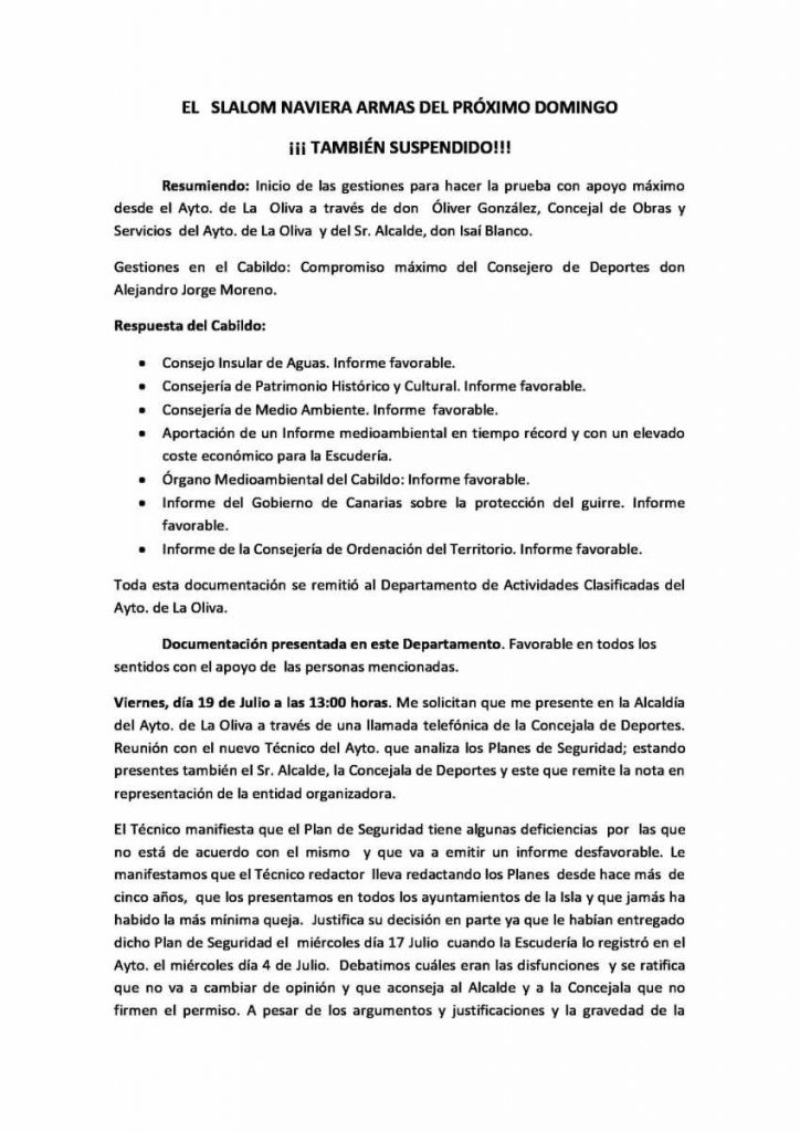 Todo hacía indicar que la calma y normalidad habían regresado a la isla de Fuerteventura, pero se ve que no es así puesto que han suspendido el Slalom Naviera Armas, que se tenía que disputar este domingo.