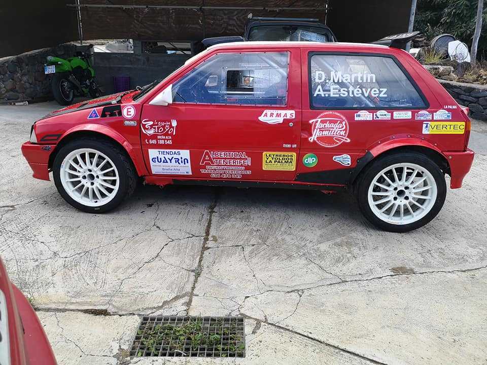 Estamos acostumbrados a ver el Citroën AX Turbo del piloto palmero David Martín en las pruebas de tierra, pero calzado con sus gomas de asfalto preparado para la Subida de Barlovento tiene una imagen realmente Imponente.