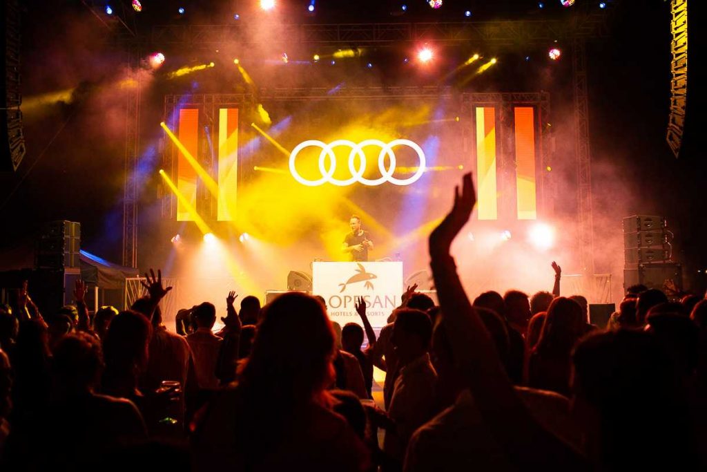 -Efecto Pasillo puso a bailar a los más de 1.000 asistentes de la undécima edición de Audi Golf Night by Mahou & Lopesan, el evento social del verano por excelencia en las Islas.