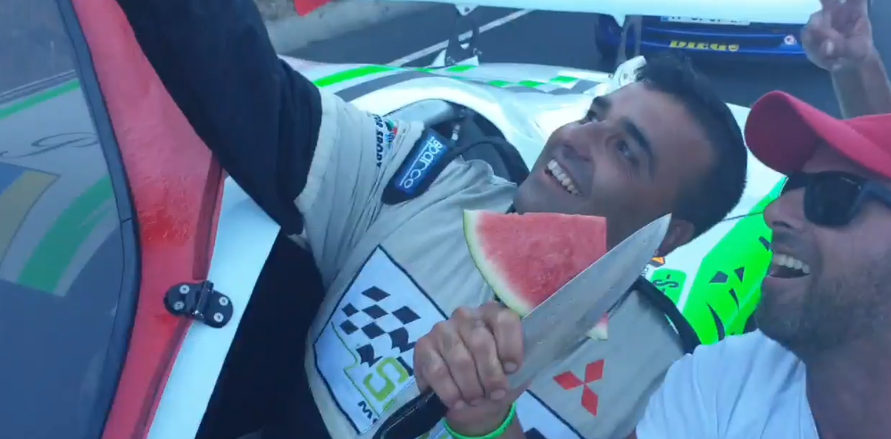 Rescatamos un precioso vídeo realizado por parte de Andrés Fernández en la pasada Subida a Barlovento, donde se observa como los pilotos que bajaban después de haber realizado una de las mangas de la cita palmera eran obsequiados con un trozo de sandía. La verdad, genial iniciativa a la que solo podemos aplaudir. ¡Grandes!