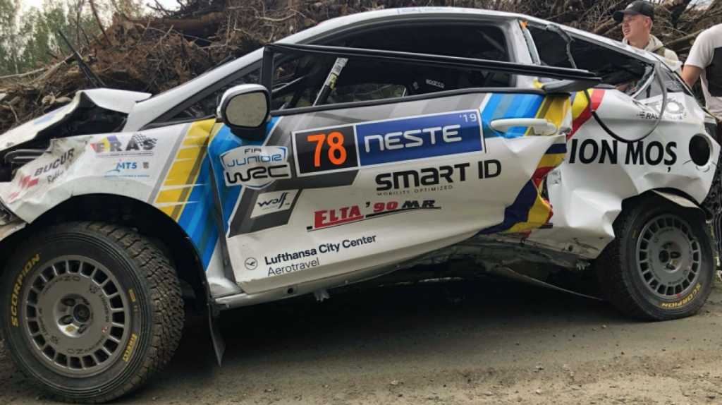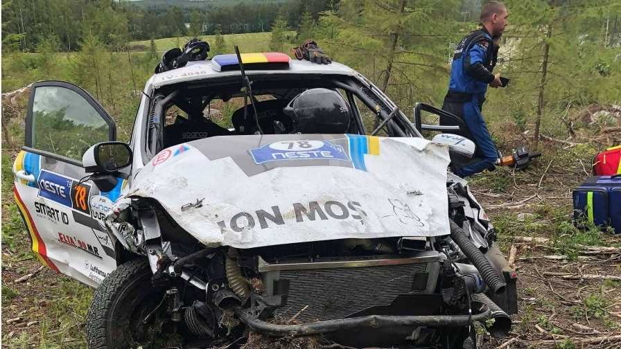 Badiu fue trasladado en avión al hospital después de volcar con su Ford Fiesta R2 en la primera pasada del viernes por la mañana en el tramo de Äänekoski. Se rompió cinco costillas, un pulmón perforado, vasos sanguíneos rotos en los ojos y conmoción cerebral.