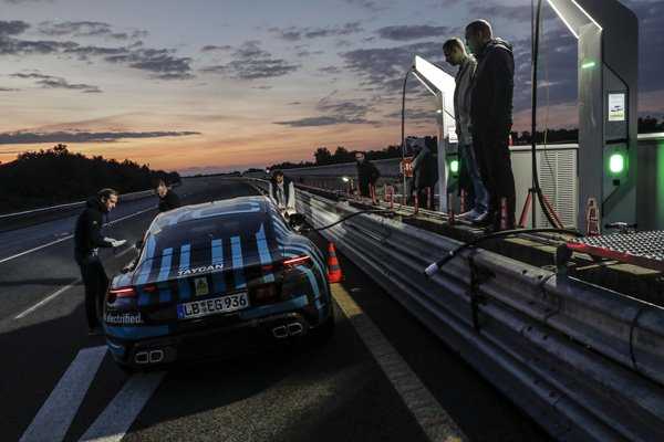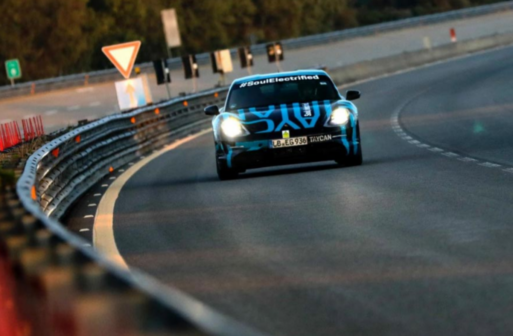 La prueba se realizó de un tirón, sin interrupciones, y el prototipo del Taycan solo paró para cargas rápidas de batería y cambios de conductor. El equipo estaba compuesto por seis pilotos probadores de Porsche. La prueba de garantía de calidad tuvo lugar como parte de un test de resistencia y altas temperaturas.