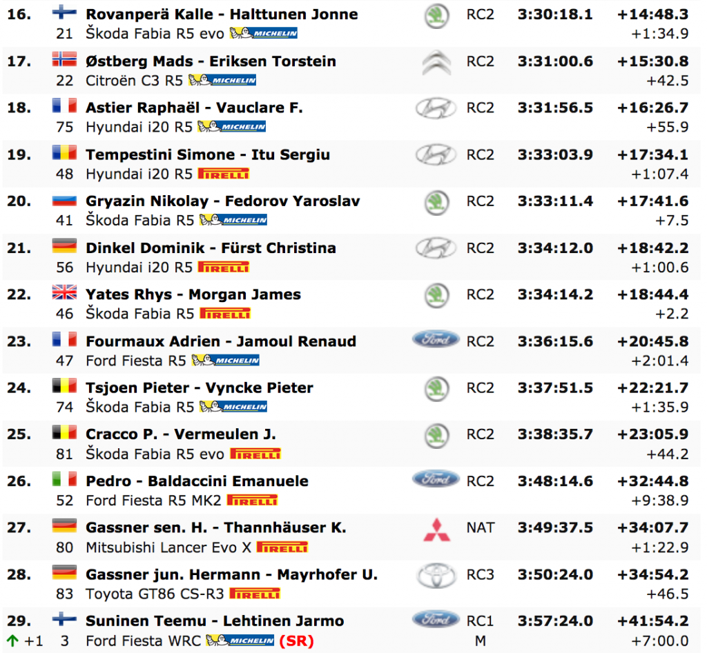 Tänak terminó 20,8 segundos por delante del irlandés Kris Meeke, y el finlandés Jari-Matti Latvala, 15,2 segundos más tarde, en tercer lugar.