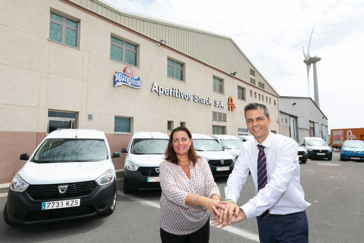 Aperitivos Snack sigue dando pasos adelante en favor del medioambiente. La empresa canaria ha sumado a su flota comercial siete vehículos de Gas Licuado (GLP) modelo Dacia Dokker suministrados por Rafael Afonso, concesionario oficial de Renault y Dacia, que le permitirán seguir atendiendo su red de más de 8000 clientes de forma más respetuosa con nuestro planeta.