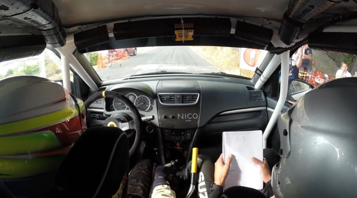 Publicamos un vídeo de cámara interior de Daniel Pérez y Pablo García (Suzuki Swift) en el décimo tramo del Rally Senderos de La Palma 2019.