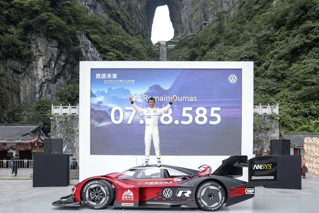 La montaña china de Tianmen, situada a cerca de 1.300 kilómetros a vuelo de pájaro de Beijing, acoge una de las carreteras más espectaculares del mundo: la Carretera de la Gran Puerta de Tianmen Shan, cercana a la ciudad de Zhangjiajie. Con 99 horquillas, tiene un desnivel de cerca de 1.100 metros. El 2 de septiembre de 2019, Romain Dumas (F) marcó la referencia con el Volkswagen ID.R en el recorrido de 10,906 kilómetros. El tiempo más rápido oficial para coches de carreras no existía antes del intento de récord. El ID.R, el embajador en el mundo de la competición de la futura familia de productos ID., está propulsado por dos motores eléctricos con un rendimiento de sistema de 500 kW (680 CV). El intento de récord en la espectacular carrera de montaña hacia la «Puerta del Cielo» apoya la ofensiva de modelos eléctricos de Volkswagen en China.