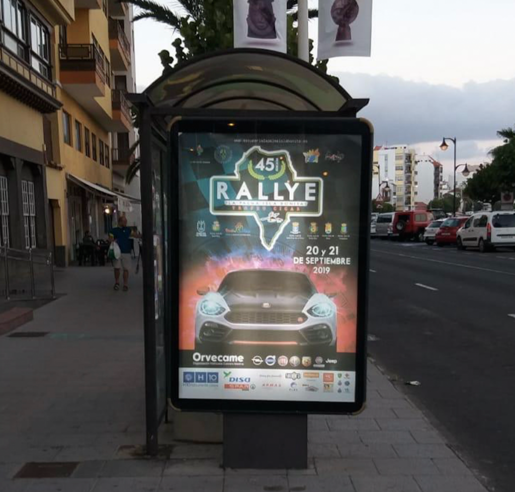 Por otro lado, diferentes puntos de la isla de La Palma ya lucen el cartel oficial de esta edición de la prueba organizada por la Escudería La Palma Isla Bonita. Santa Cruz de La Palma y Los Llanos de Aridane, los núcleos más poblados, así como las paradas de guagua, anuncian la celebración del evento. Sin duda, una buena promoción que se hace extensiva a los patrocinadores y colaboradores de este espectáculo deportivo.
