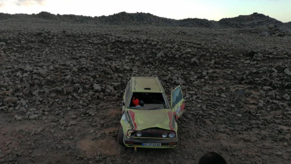 Lionel López y Miguel Sosa (VW Golf GTI) no tuvieron la suerte de cara en el Slalom La Picona (Fuerteventura), puesto que en la última cronometrada tenían una fuerte salida de carretera.