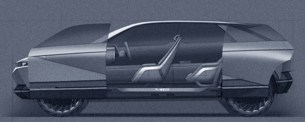 El nombre del vehículo también se debe a los ángulos de 45 grados de la parte delantera y trasera, que generan una silueta en forma de diamante que prefigura la dirección de diseño de los futuros modelos eléctricos de la marca.