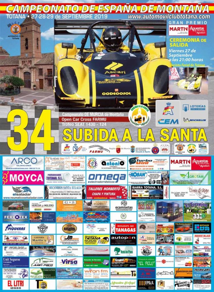 La doble cita final del Campeonato de España de Montaña del 2019 en Levante comienza esta fin de semana, días 27, 28 y 29 de septiembre, con la disputa de la penúltima prueba del certamen en la subida a La Santa. La competición con sede en la localidad murciana de Totana fue el año pasado, en su retorno al calendario nacional, el escenario de un emocionante desenlace para la temporada y en esta ocasión puede volver a resultar decisiva para la adjudicación de los títulos en juego en las diferentes categorías y clases del campeonato.