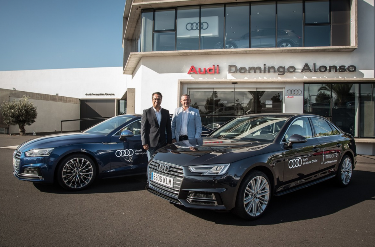 Juan Carlos García, Gerente de Ventas de Audi en Domingo Alonso Tenerife, y Diego Navarro, compositor, orquestador y director tinerfeño del Festival Internacional de Música de Cine en Tenerife, sellaron este acuerdo que estrecha aún más su relación, y realizaron la entrega de las llaves de los vehículos.