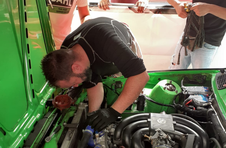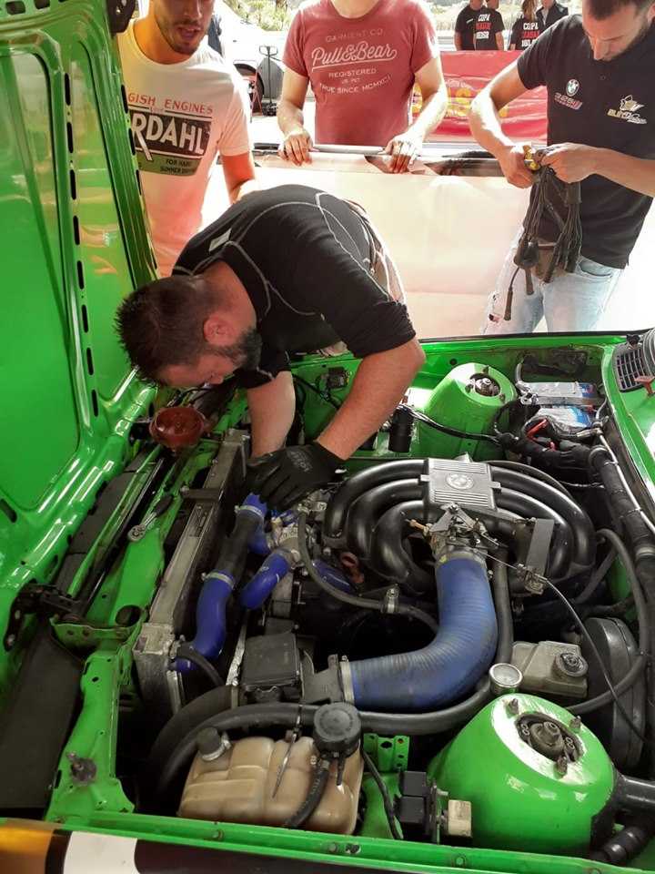 David Bolaños volcado en el coche de autovintage_rally_team de Juanfra Santana y Ruben Rodriguez para que sigan corriendo como saben en la #CopaBMWPower.