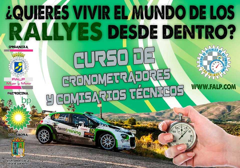 El próximo sábado día 5 de Octubre, en el Local Socio Cultural de la Vega de San Mateo, (junto a la zona Deportiva) se va impartir por el Colegio de Oficiales de Automovilismo de las Palmas dos cursos, para formar a nuevos Cronometradores y Comisarios Técnicos, que se incorporarán a la Federación Interinsular de Automovilismo de las Palmas.