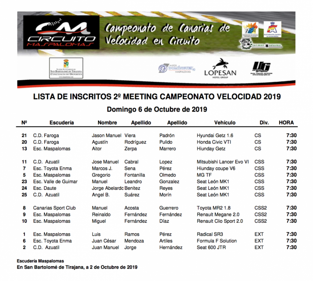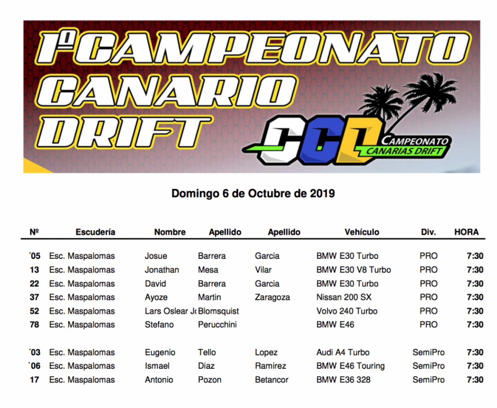 La Escudería Maspalomas organiza estos dos campeonatos y espera una buena afluencia de público a las gradas del circuito, tras las nuevas incorporaciones y para ver la espectacularidad de la especialidad del Drift, nuevo en las islas como competición oficial auspiciada por la Federación Canaria de Automovilismo.