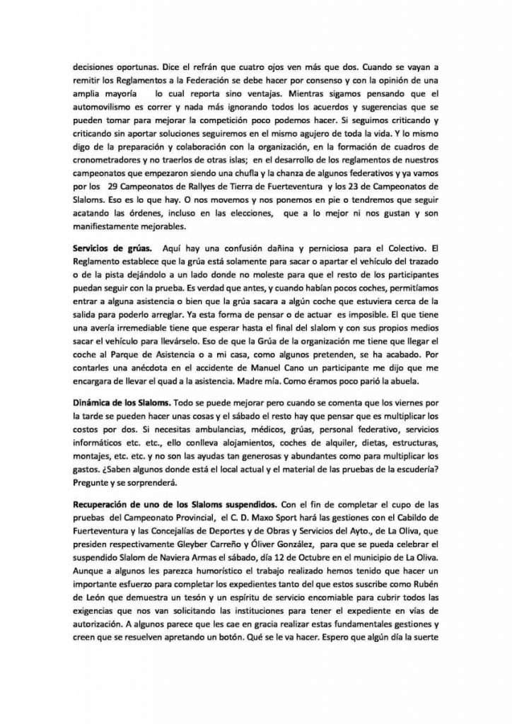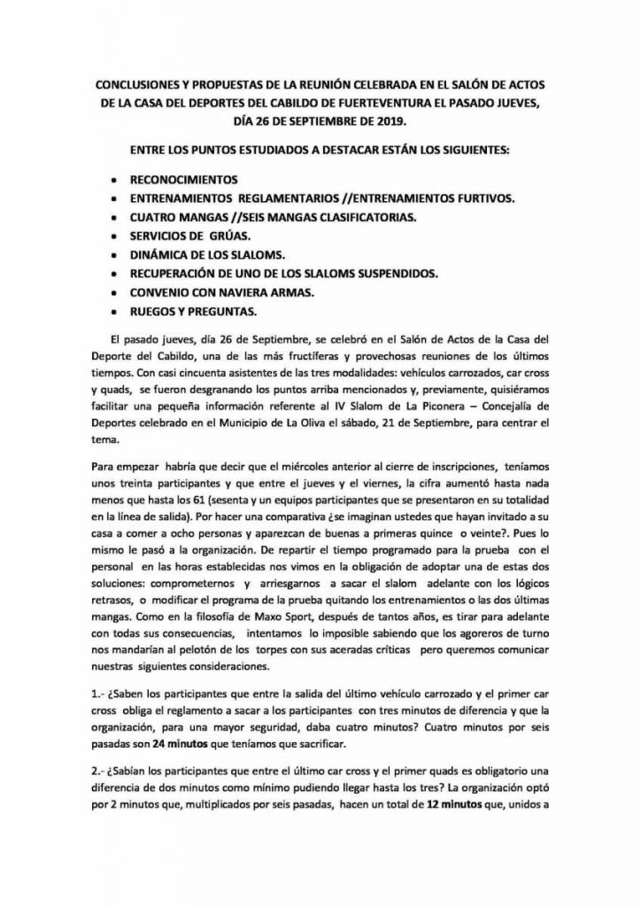 Nota informativa de la Escudería MaxoSport sobre las conclusiones y propuestas reunión celebrada pasado jueves 26 de septiembre.