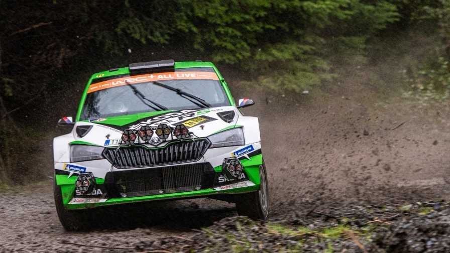 Pierre-Louis Loubet fue la fuerza dominante en el WRC 2. El francés, al volante de un Fabia, lideró durante todo el día con una ventaja de 35,7 segundos sobre el veterano ex campeón del mundo Petter Solberg, cuatro veces ganador del Rally GB y compitiendo en su último rallye.