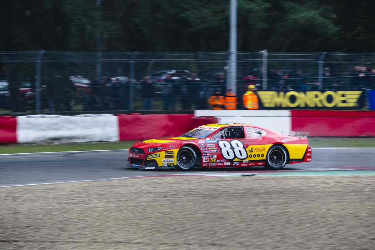 La última carrera Elite 2 de las NASCAR Whelen Euro Series 2019 en Zolder se presentaba con los pilotos de Racing Engineering, Hugo De Sadeleer y Myatt Snider, alineándose en los puestos noveno y décimo de la parrilla después de los resultados de la carrera del sábado, en la que ambos vieron arruinadas sus opciones tras recibir toques de otros competidores que obligaron a retirarse a Myatt e hicieron perder varias vueltas a Hugo. Como anunciaba el pronóstico meteorológico, había llovido y la pista estaba mojada, por lo que los coches iniciaron la carrera de 15 vueltas montando neumáticos rayados.