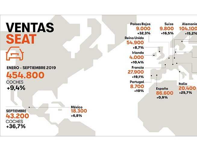 Las ventas mundiales de SEAT han alcanzado un nuevo récord. Entre enero y septiembre, la firma automovilística ha entregado 454.800 vehículos, un 9,4% más que en el mismo periodo de 2018 (415.600 coches). Este resultado significa el mejor registro en la historia de SEAT y supera ampliamente el récord establecido entre enero y septiembre de 2018.