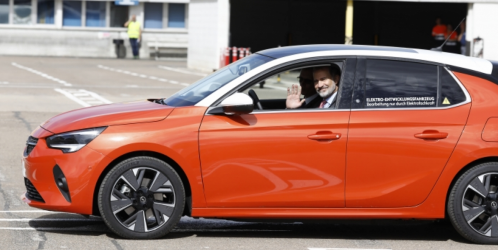 · Durante su visita, el Rey se puso al volante de un Opel Corsa-e, la versión 100% eléctrica de este modelo.