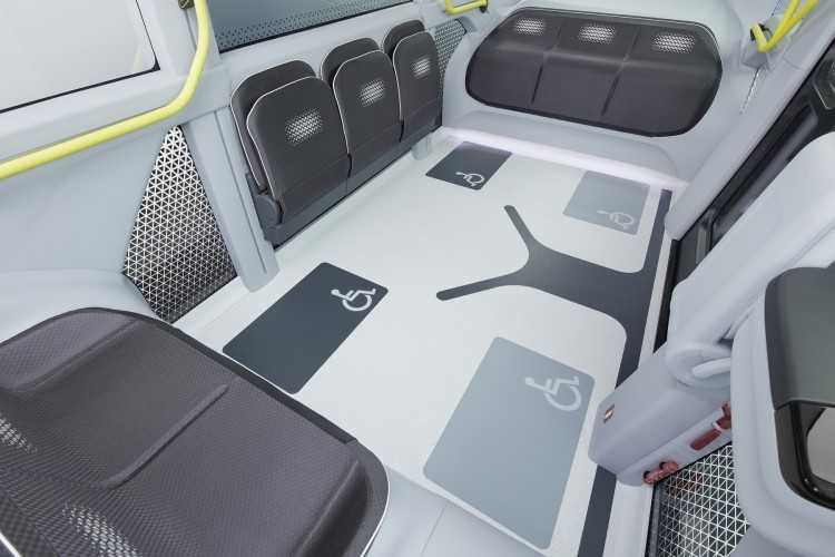 Con su amplia distancia entre ejes y su suelo bajo, el vehículo puede transportar al mismo tiempo hasta cuatro pasajeros en silla de ruedas, además de otros pasajeros de pie.