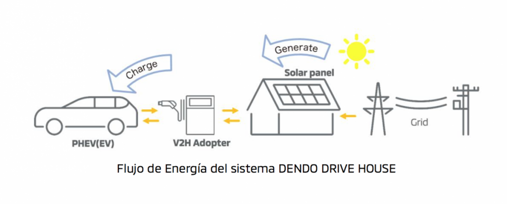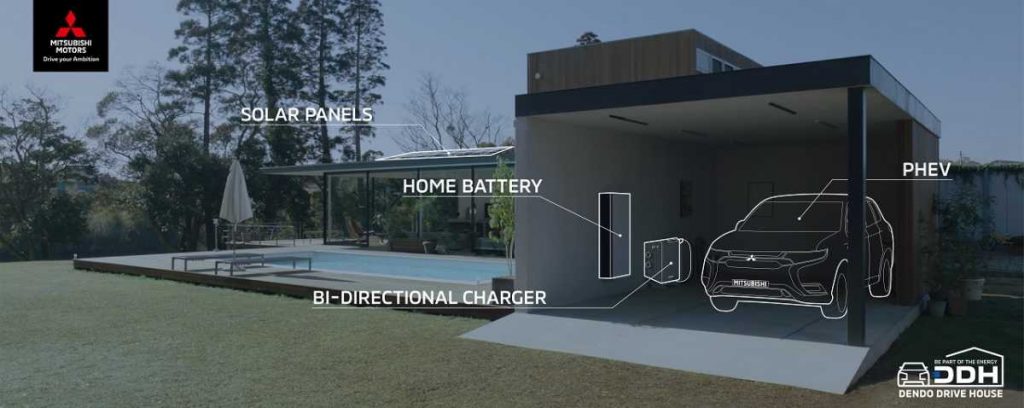 DDH es un sistema comprendido por un vehículo eléctrico (EV) o un híbrido Enchufable (PHEV) de Mitsubishi, un cargador bidireccional, unos paneles solares y una batería doméstica, diseñado todo ello para integrarse como una parte más de la vivienda.
